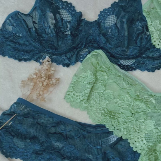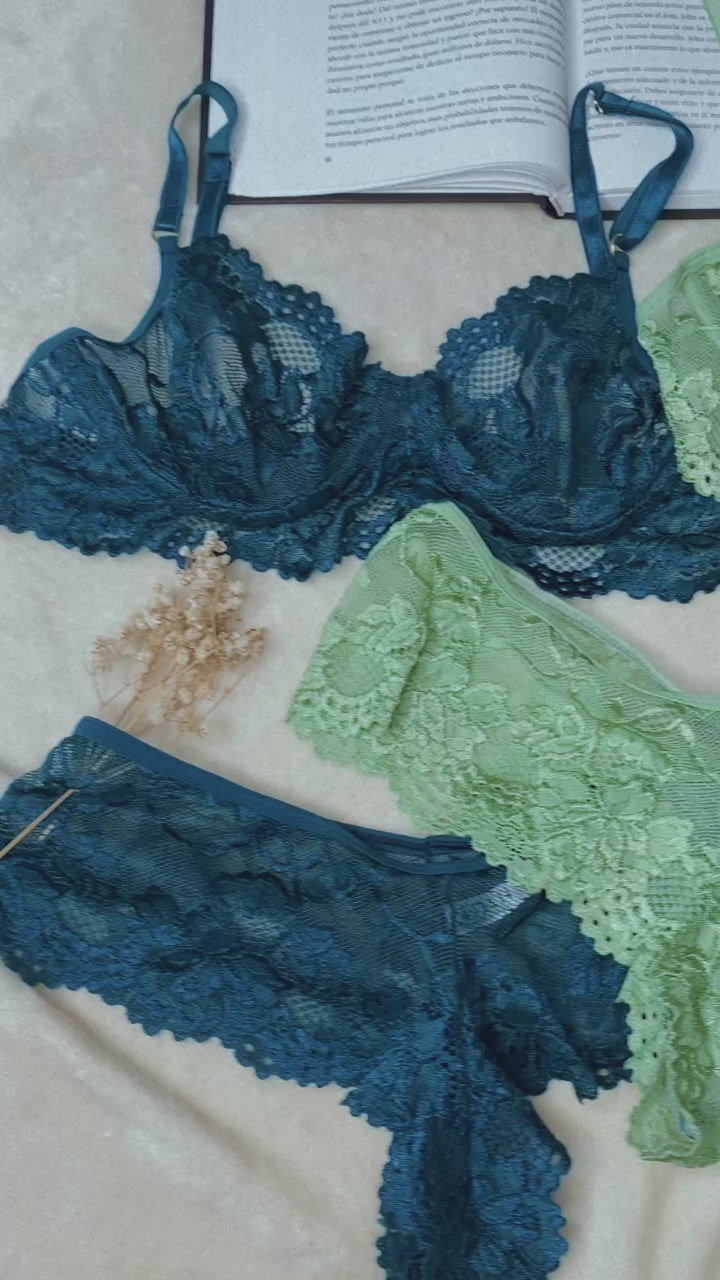 COMBO DE 2 SETS COMPUESTOS POR BRA+CACHETERO EN COLOR AZUL PETROLEO Y VERDE PISTACHO